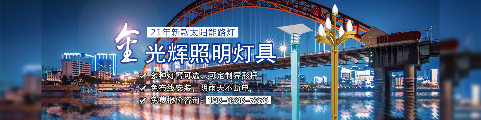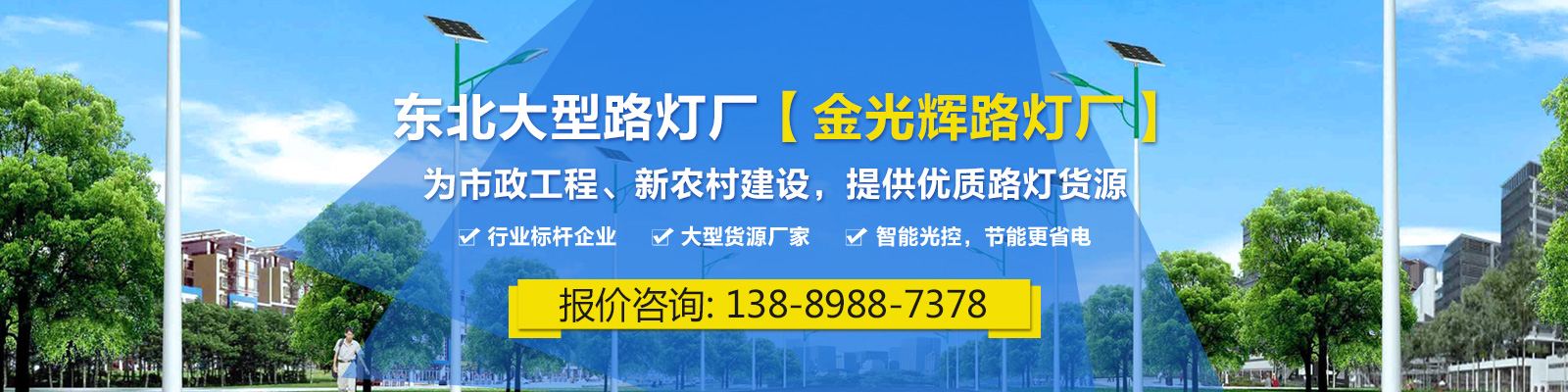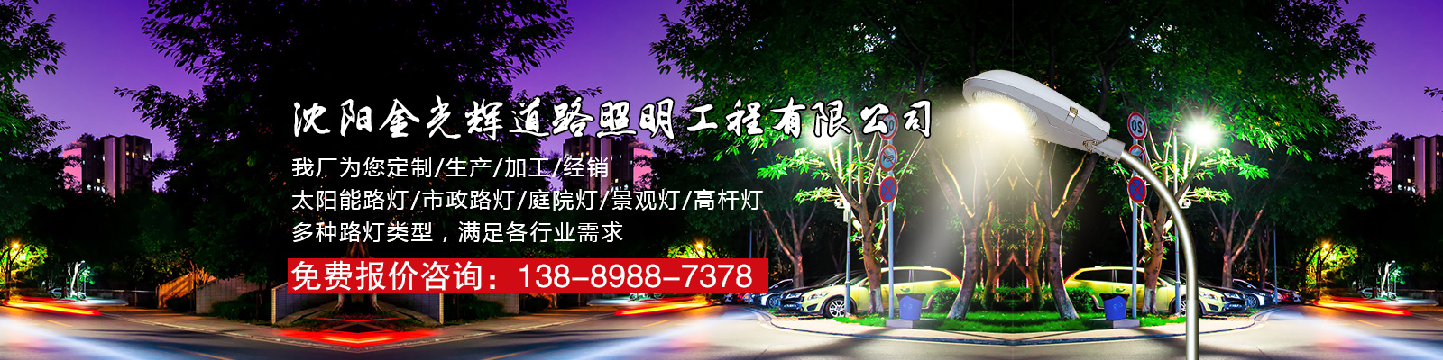 沈陽(yáng)金光輝道路照明工程有限公司是一家從事太陽(yáng)能路燈、庭院燈、高桿燈、景觀燈、草坪燈、工礦燈、LED照明、監(jiān)控桿、信號(hào)燈桿、音樂(lè)噴泉等室內(nèi)外照明燈具綜合性生產(chǎn)廠家及專(zhuān)業(yè)的研發(fā)、生產(chǎn)、銷(xiāo)售、服務(wù)為一體的技術(shù)企業(yè)。